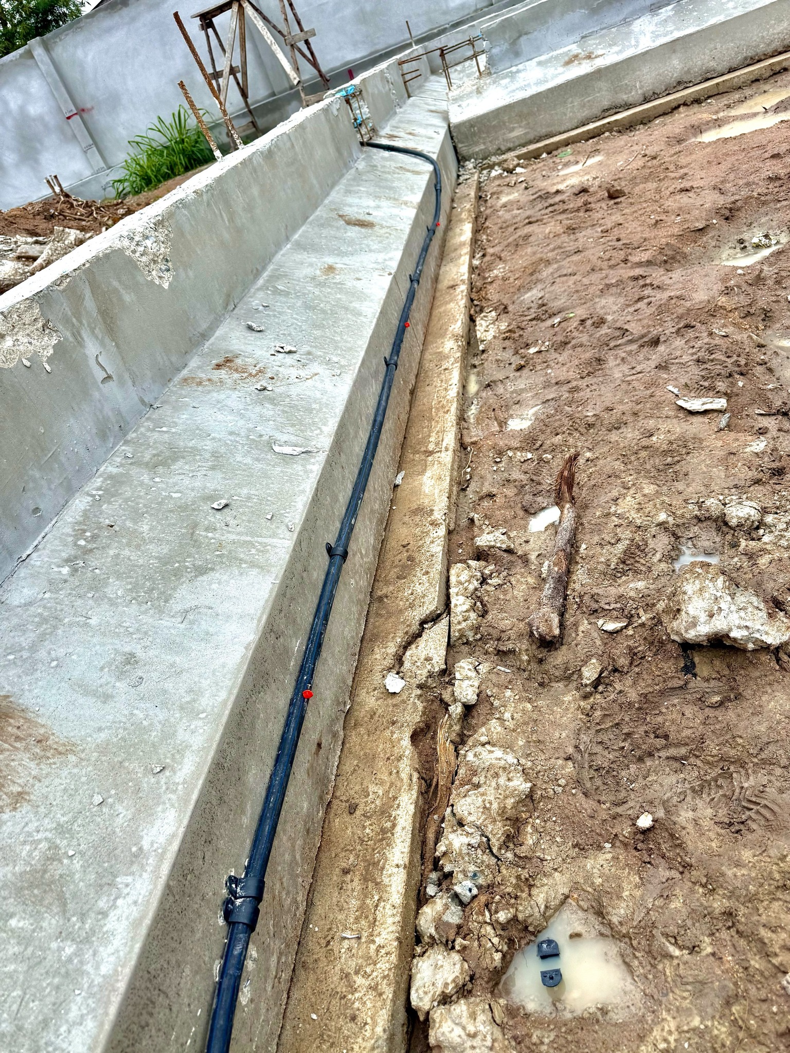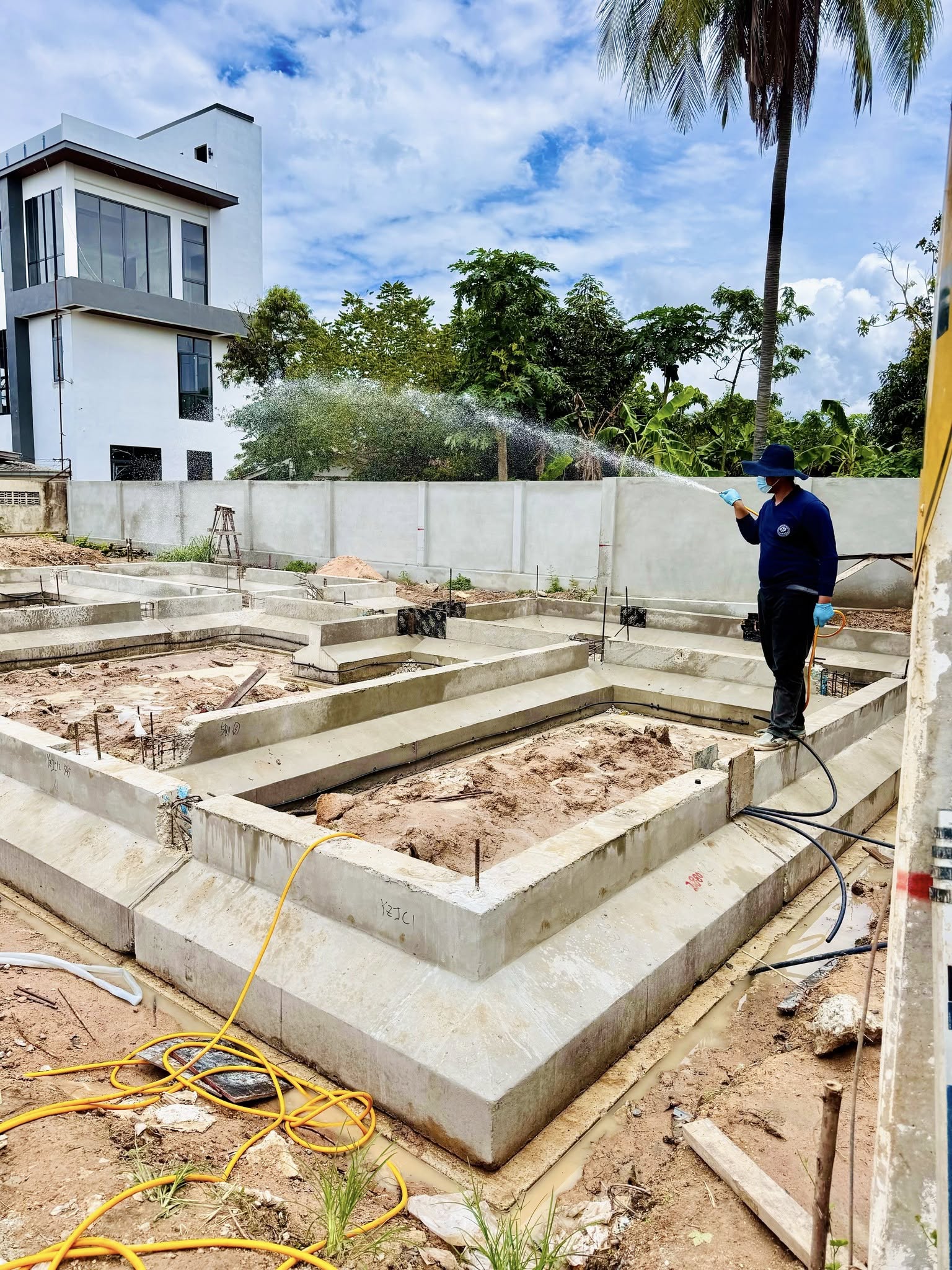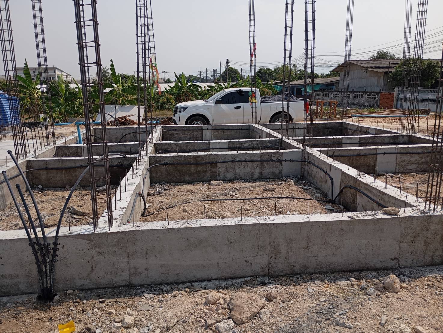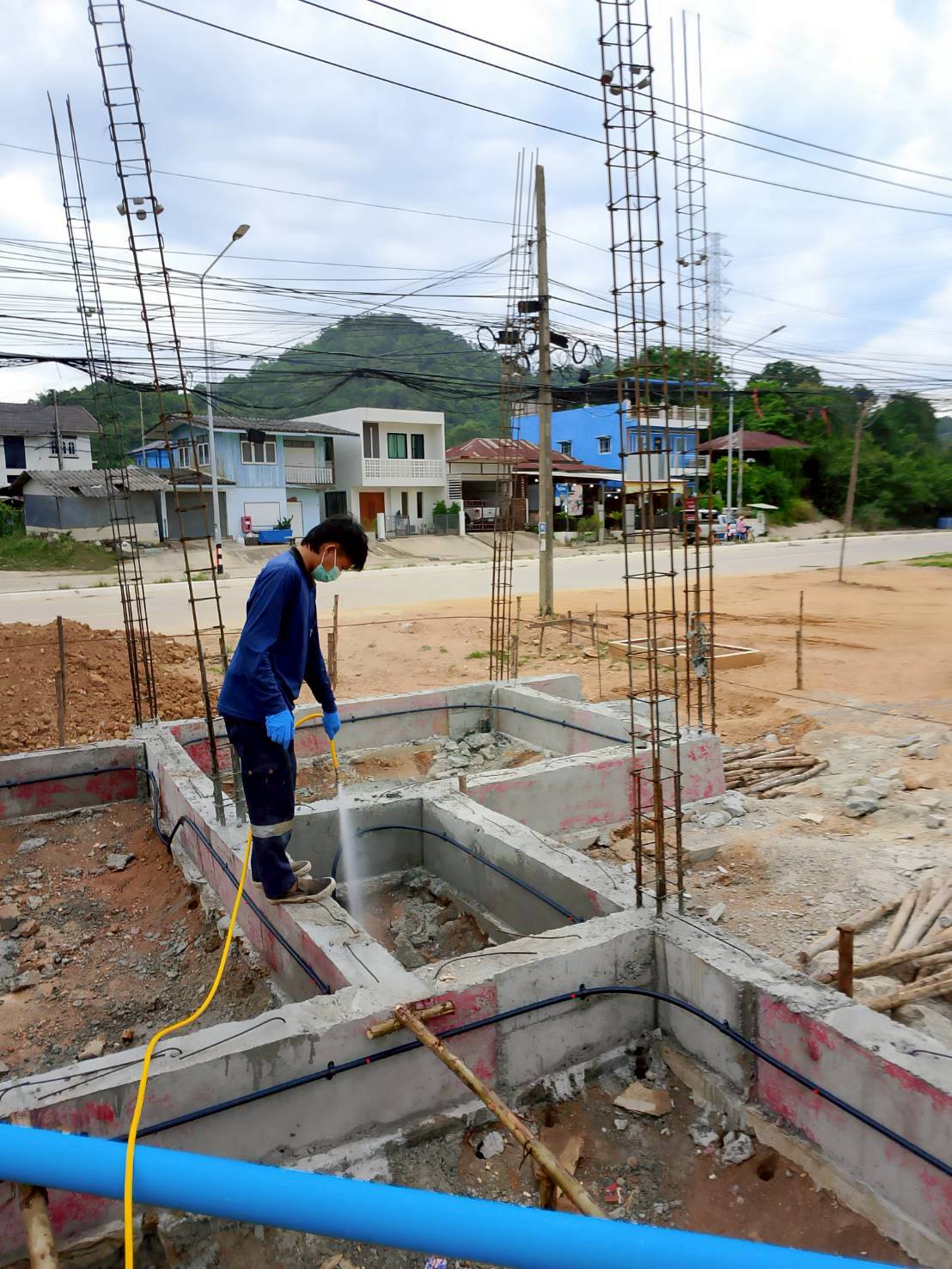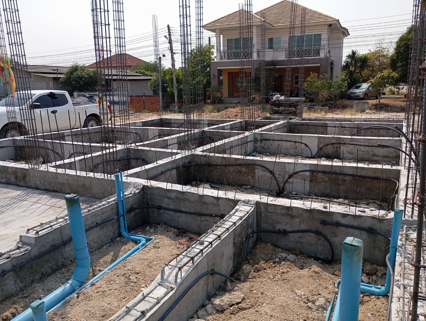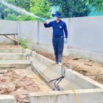 1. เจ้าหน้าที่จะเริ่มดำเนินการหลังจากทางฝ่ายก่อสร้างได้ทำการเทคานคอดินเสร็จเรียบร้อยแล้ว โดยเจ้าหน้าที่จะทำการวางท่อติดกับแนวคานด้านใน รอบตัวอาคาร ท่อน้ำยาเคมีจะมีวาล์วอัดน้ำยาเคมีไว้รอบอาคารเป็นช่วงๆ สำหรับอัดน้ำยาเคมีเข้าไปใต้พื้นอาคารได้ตลอดอายุบ้าน