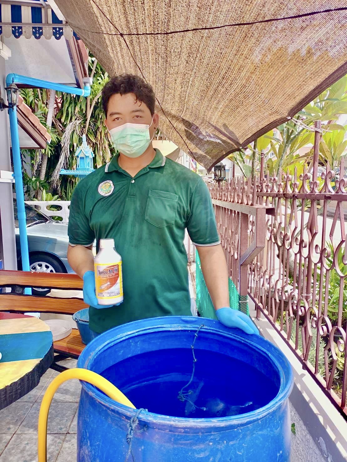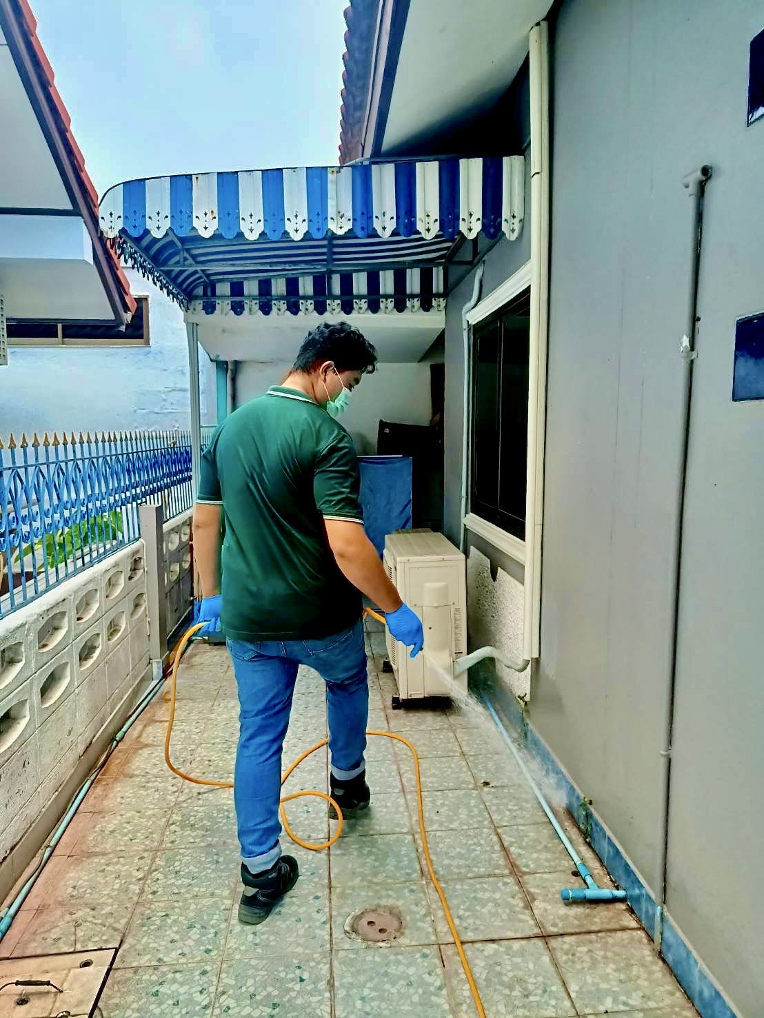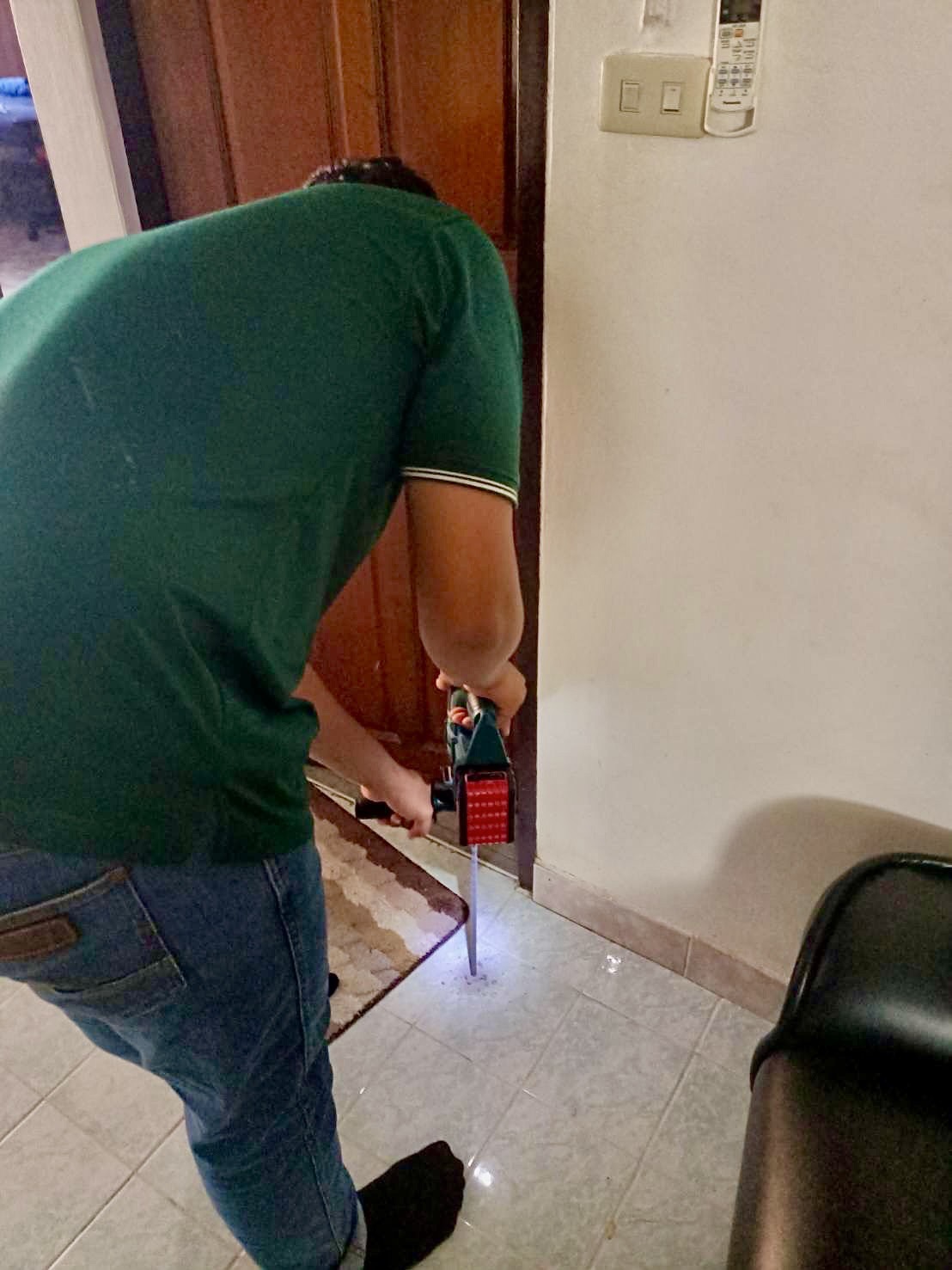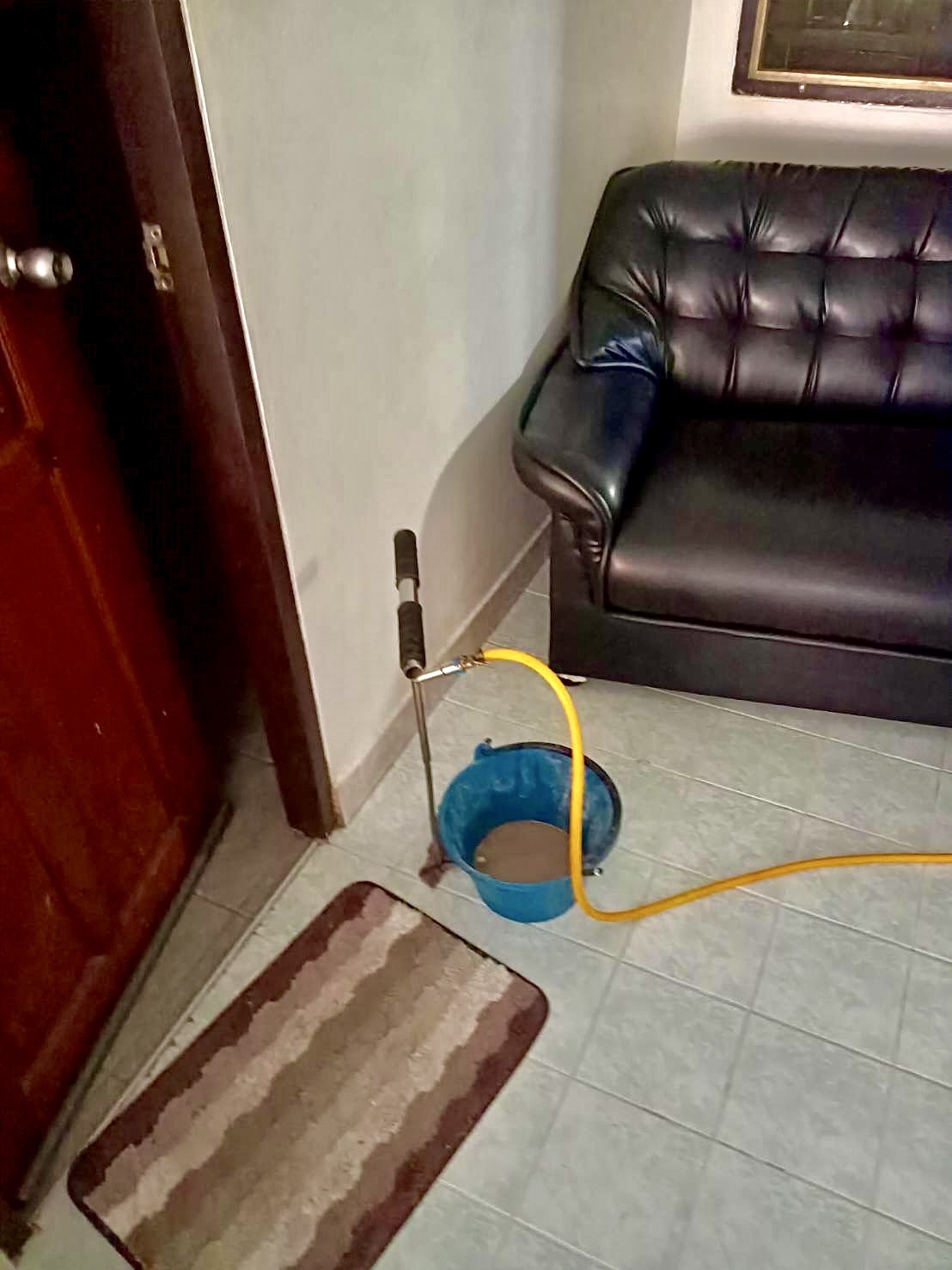 หลังจากผู้ว่าจ้างได้ทำการเตรียมหน้าดินปรับพื้นดินพร้อมที่จะเทพื้นแล้ว  เจ้าหน้าที่จะทำการอัดน้ำยาภายในตัวอาคารทุกตารางเมตร โดยใช้หัวอัดน้ำยา ( High Pressure Injector ) ปักลงไปในดินประมาณ 30-50  เซนติเมตร และอัดน้ำยาลงดินและฉีดพ่นหน้าดินทุกตารางเมตร ตารางเมตรละ 5 ลิตร และห่างจากตัวอาคาร 1 เมตรโดยรอบ สารเคมีที่ใช้ ไบรทริน 50 ทีชี อัตรตราส่วนผสม 1 ลิตรเท่ากับน้ำ 200 ลิตร ฉีดพ่นตารางเมตรละ 5 ลิตร ตามเอกสารแนบ หลังจากทำการอัดน้ำยาเคมีปลวกเสร็จเรียบร้อยแล้ว   เจ้าหน้าที่จะเข้าทำการตรวจเช็ค ทุกระยะ  6  เดือนต่อครั้ง     ตลอดระยะสัญญา  3  ปี นับจากวันฉีดพ่นเคมี