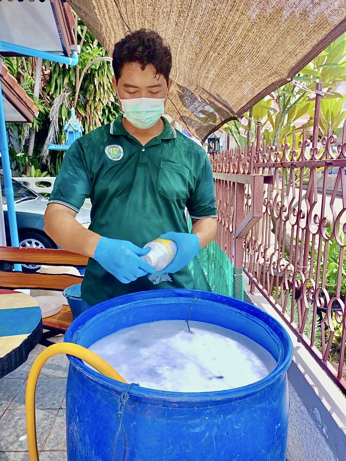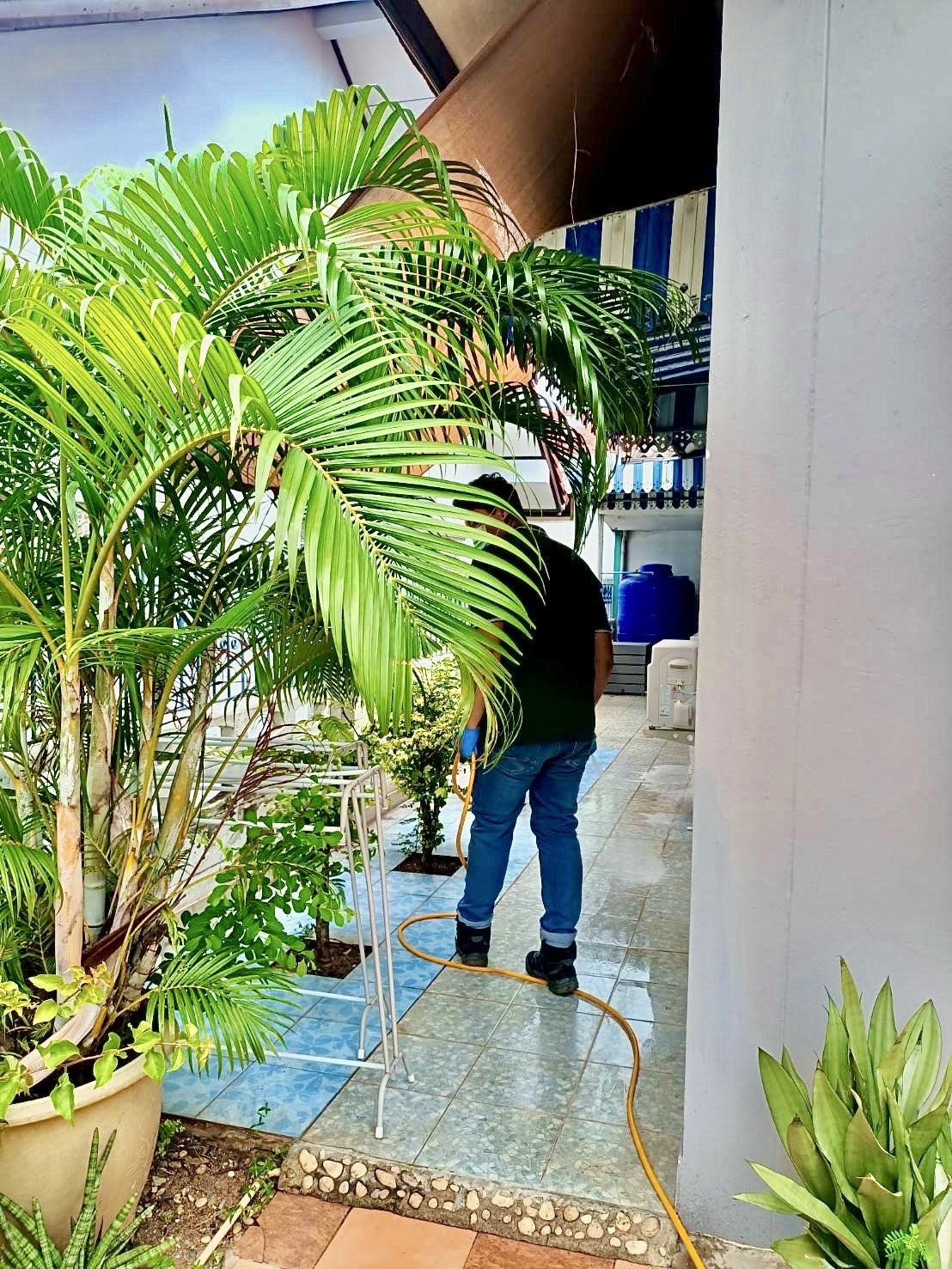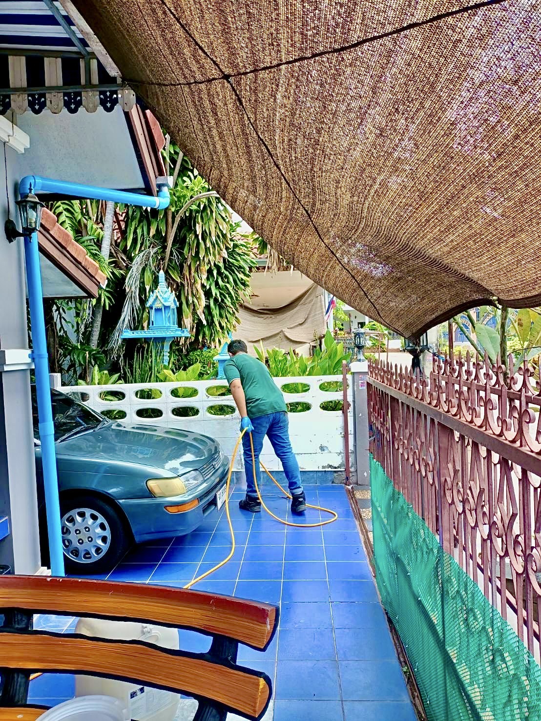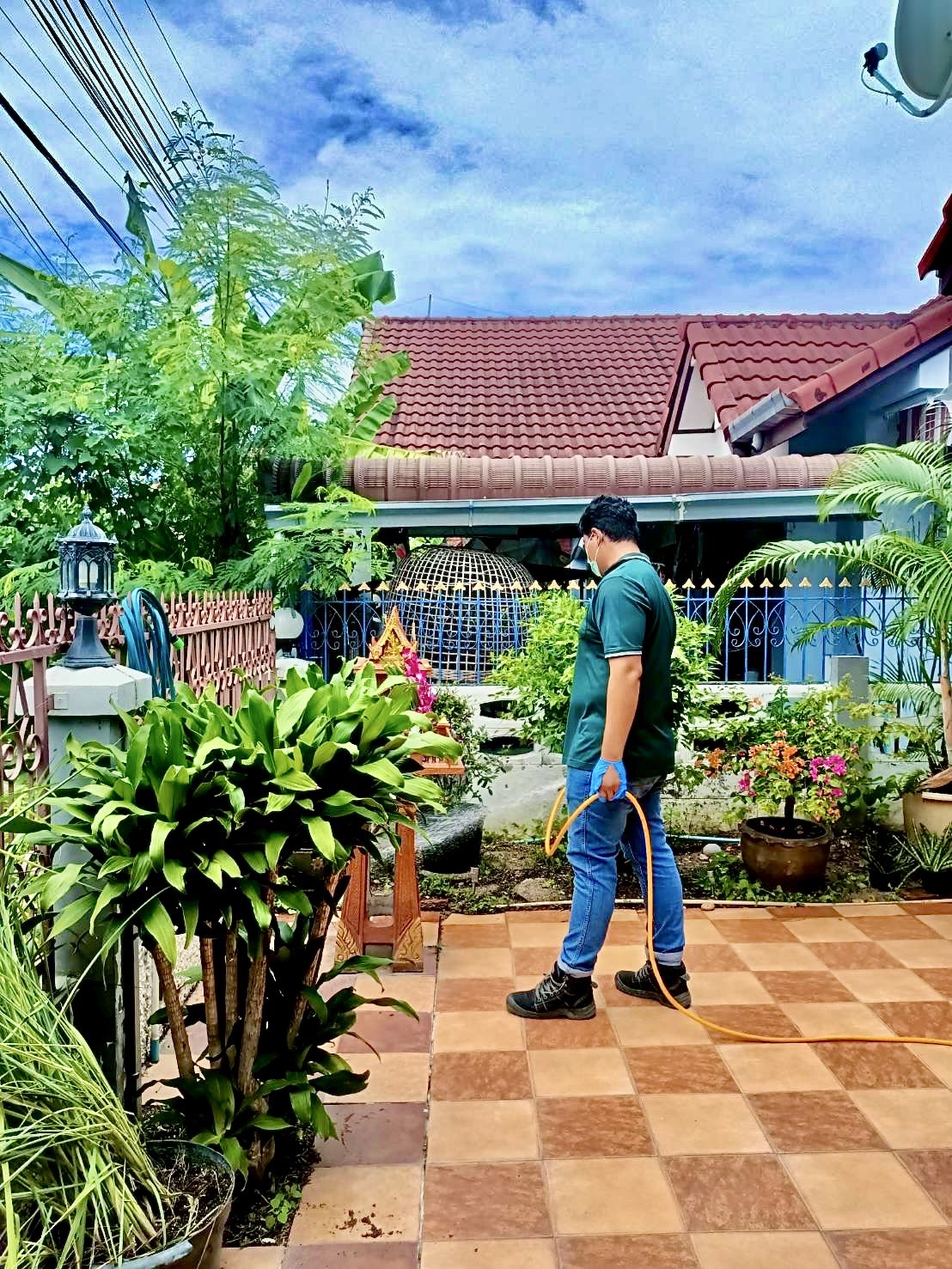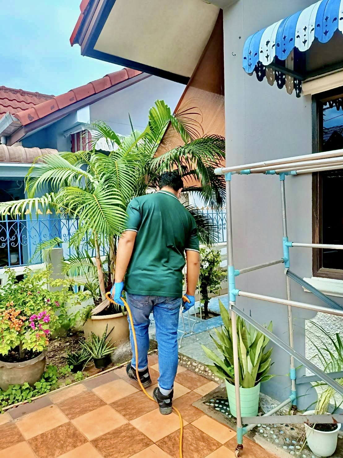 หลังจากผู้ว่าจ้างได้ทำการเตรียมหน้าดินปรับพื้นดินพร้อมที่จะเทพื้นแล้ว  เจ้าหน้าที่จะทำการอัดน้ำยาภายในตัวอาคารทุกตารางเมตร โดยใช้หัวอัดน้ำยา ( High Pressure Injector ) ปักลงไปในดินประมาณ 30-50  เซนติเมตร และอัดน้ำยาลงดินและฉีดพ่นหน้าดินทุกตารางเมตร ตารางเมตรละ 5 ลิตร และห่างจากตัวอาคาร 1 เมตรโดยรอบ สารเคมีที่ใช้ ไบรทริน 50 ทีชี อัตรตราส่วนผสม 1 ลิตรเท่ากับน้ำ 200 ลิตร ฉีดพ่นตารางเมตรละ 5 ลิตร ตามเอกสารแนบ หลังจากทำการอัดน้ำยาเคมีปลวกเสร็จเรียบร้อยแล้ว   เจ้าหน้าที่จะเข้าทำการตรวจเช็ค ทุกระยะ  6  เดือนต่อครั้ง     ตลอดระยะสัญญา  3  ปี นับจากวันฉีดพ่นเคมี